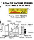 Safetysticker sheet for a Drilling Rig Pump, contains 42 decals on sheet & application instructions all on one easy to apply sheet. These decals are additional to those supplied with the machine and include all the commonly recognised risks and hazards that are required to be labelled by local O H & S regulations. Crush zones, hot parts, pressurised system, pinch points warnings, rotating parts warnings, knock over & collision warnings, filler labels, cab warning stickers are all included. Everything you need to complete a risk assessment and have your machine meet the local OH & S standards