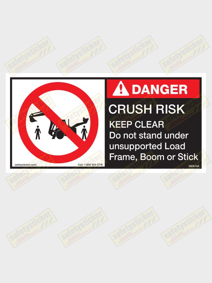 Warning Crush Risk Do Not Stand Under (Backhoe Version) Decal